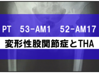 第53回理学療法士国家試験AM1 変形性股関節症の概要 変形性股関節症は関節軟骨の変性や摩耗が原因となって生じる、股関節の器質的障害である。病期が進むに連れて変形が著しくなり、日常生活に大きな影響を及ぼすこともある。理学療法士国家試験においては重要となるポイントがあるので、得点するだけであればそこまで苦労はしないはずだ。 変形性股関節症の初期では、正座時や階段昇降時などに疼痛が発生する。 進行期から末期になると、関節可動域制限や水腫・歩行困難・疼痛のさらなる増強などが生じる。 レントゲン像の ...